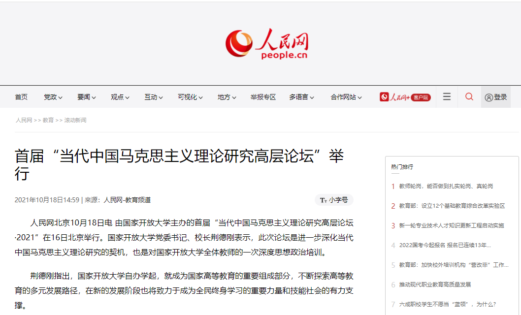 2021年10月16日,由开放大学主办、开放大学马克思主义学院承办的首届“当代中国马克思主义理论研究高层论坛·2021”在北京举行。会议的主题是“中国共产党对马克思主义的理论贡献——庆祝中国共产党成立100周年”。来自中共中央党校、中国社会科学院、北京大学、清华大学等科研机构...